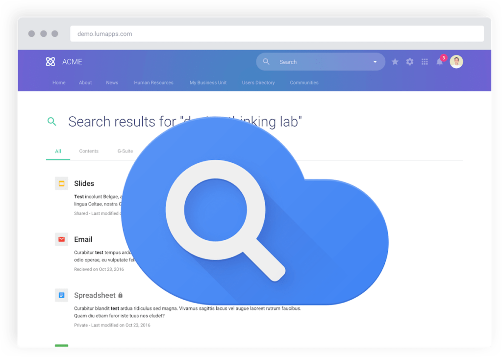 Google Workspace Search is a tool that helps you quickly find things across all the apps in Google Workspace, like Gmail, Google Drive, Google Calendar, Google Docs, and more. Instead of searching in each app separately, this search feature lets you find everything—emails, files, meetings, or contacts—in one place.