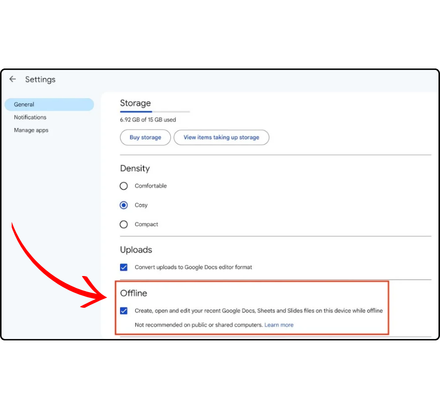 You can still edit your documents when you don’t have an internet connection by enabling offline mode. Your changes will update once you’re back online.